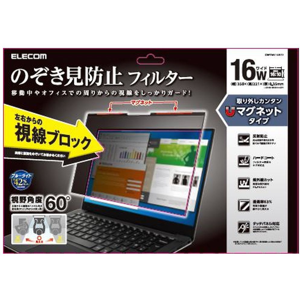 16Wインチ(16:10)対応 のぞき見防止フィルターマグネットタイプ(2way) EF-PFMK16W10