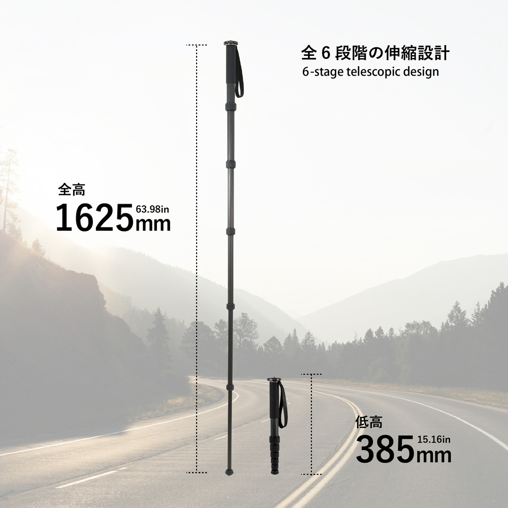 「MA326CJ カーボン6段一脚 」は、パイプ径32mmによる堅牢なカーボン素材を使用した一脚です。優れた安定感と軽量性を兼ね備えており、様々な撮影シーンで活躍します。