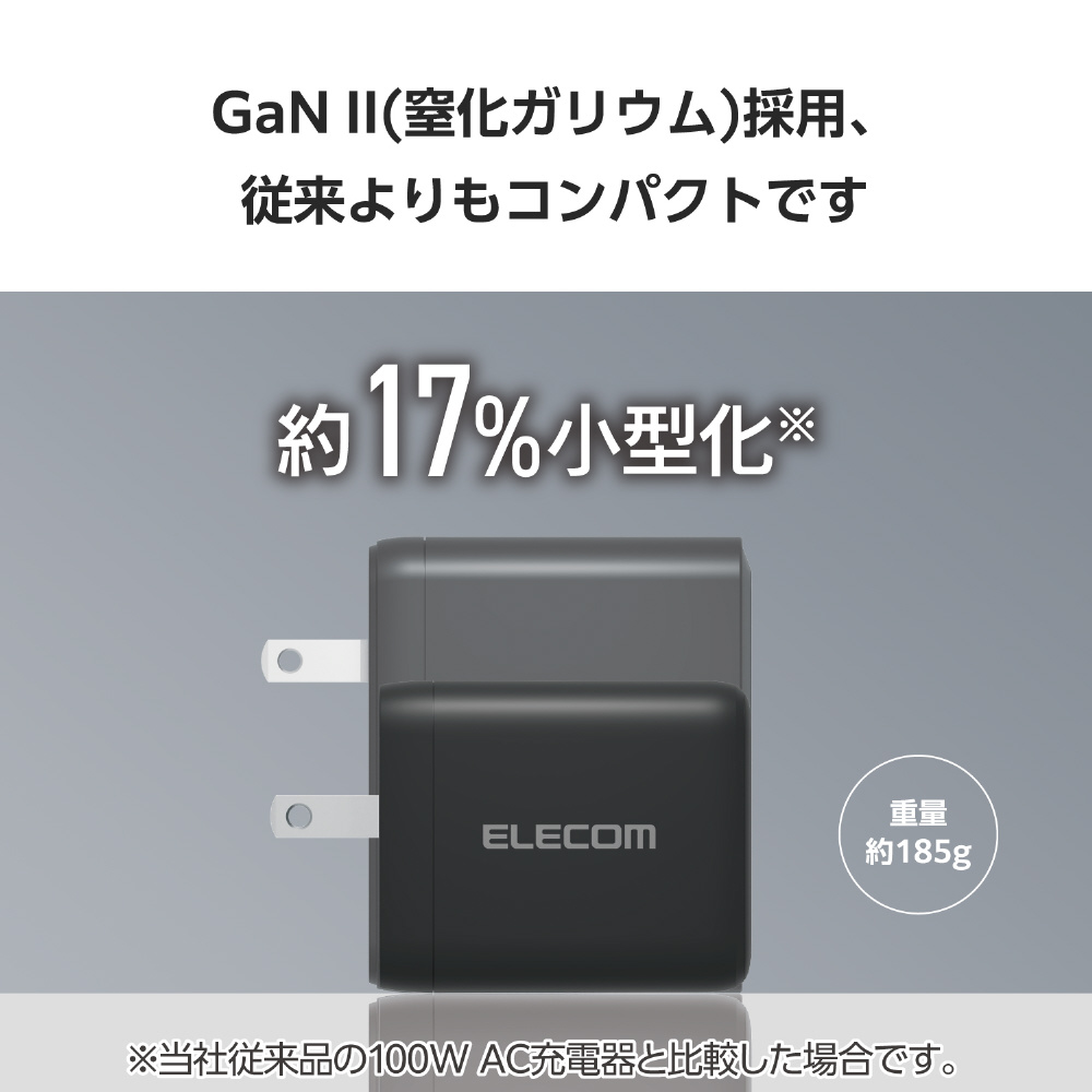 充電器 PD 100W / PPS対応 高速充電 3ポート ( USB-C ×3 ) GaN II採用 PSE認証 コンパクト 折りたたみ式プラグ 【 MacBook iPhone iPad Galaxy Android 等対応 】 MPA-AC113100BK