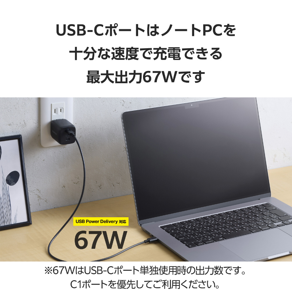※本製品のUSB Power Delivery最大出力は67Wです。PPS(Programmable Power Supply)最大出力は55Wです。