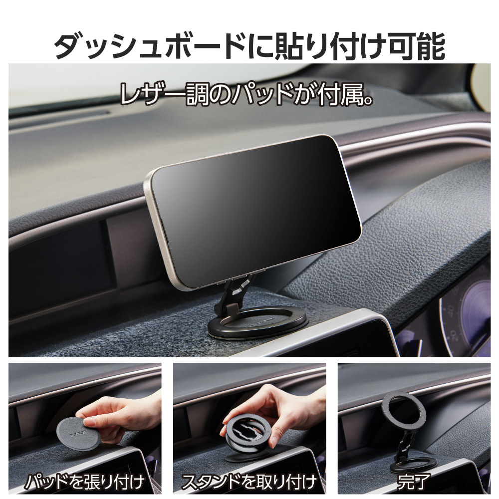 マグネット スマホスタンド 両面マグネット スタンド ( キッチン / 冷蔵庫 / 車 ) 折りたたみ 360度回転 角度調整 メタルプレート マグネットパッド付 【 MagSafe 対応 iPhone / Android スマホ 装着可 】