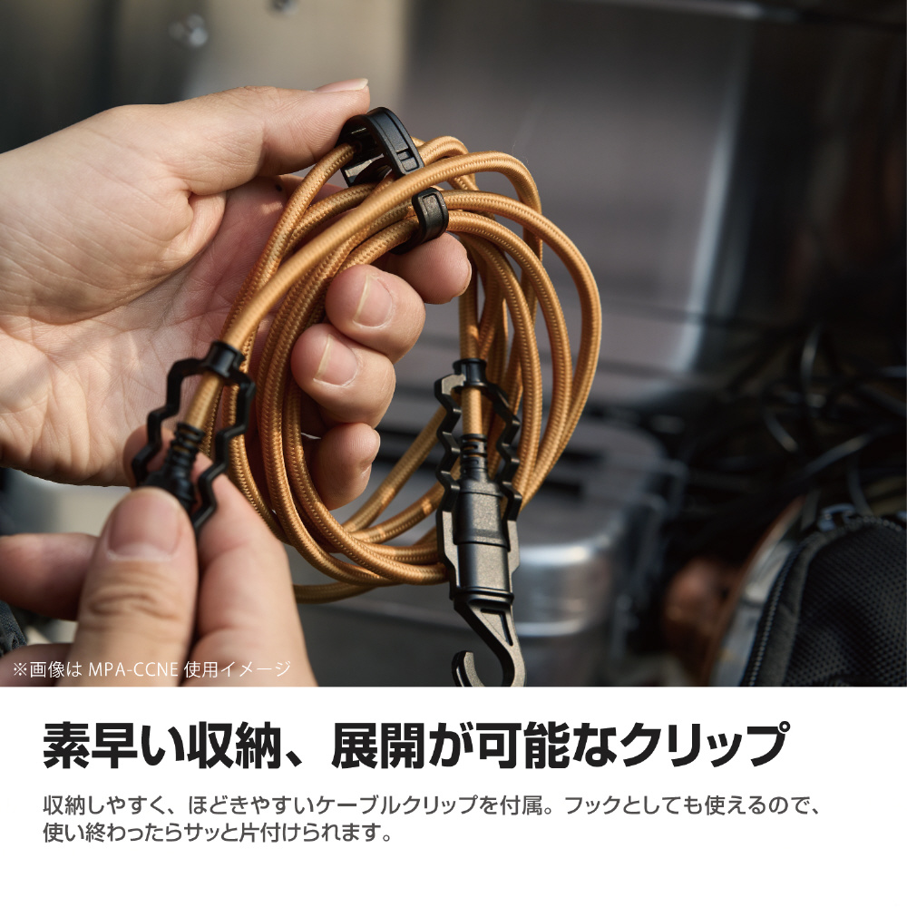収納しやすく、ほどきやすいケーブルクリップを付属。フックとしても使えるので、使い終わったらサッと片付けられます。