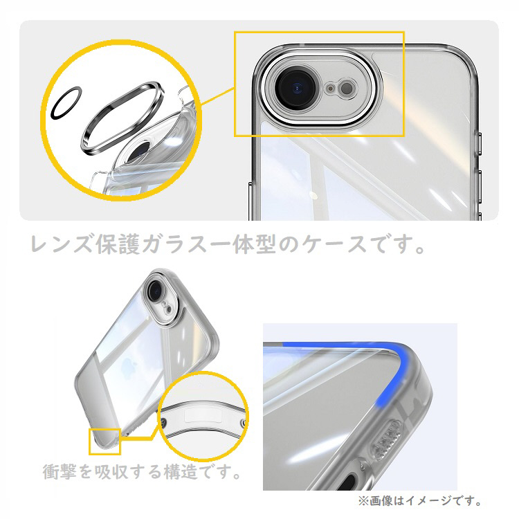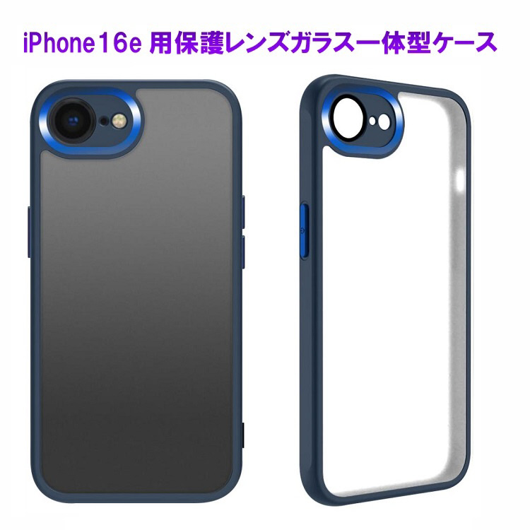 iPhone16e用保護レンズガラス一体型ケース(ブルー)