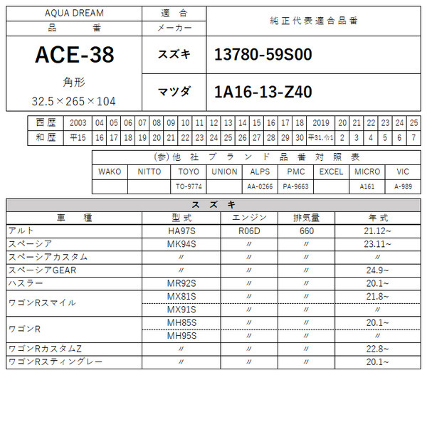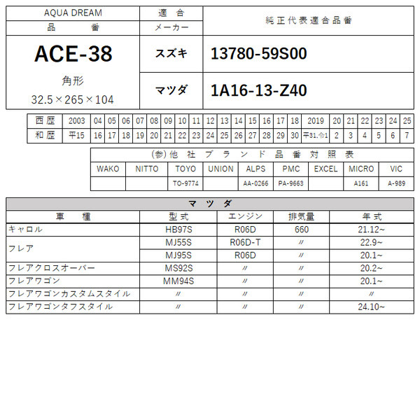 ■純正共通品番:「スズキ」 13780-59S00・「マツダ」 1A16-13-Z40
