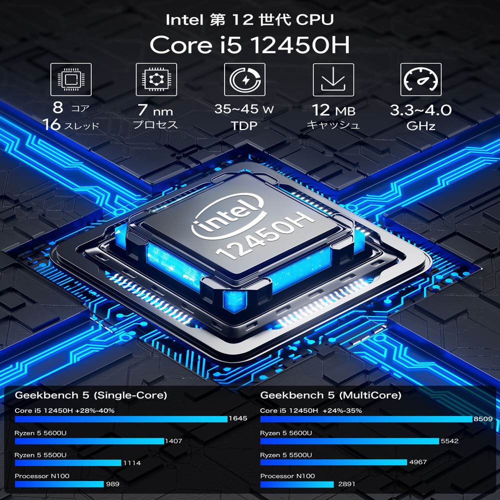 Intel Core i5-12450H Processor搭載 高性能ミニPC