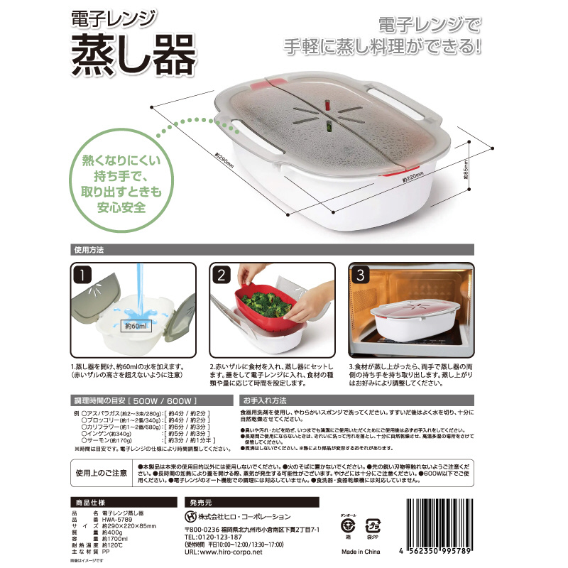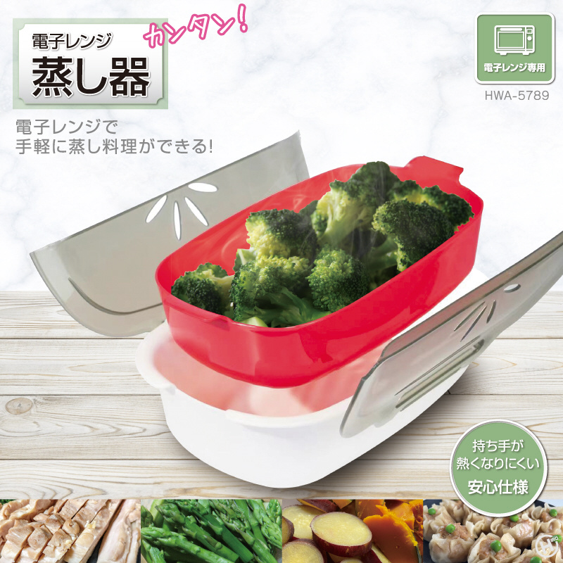 電子レンジ蒸し器 レッド HWA-5789