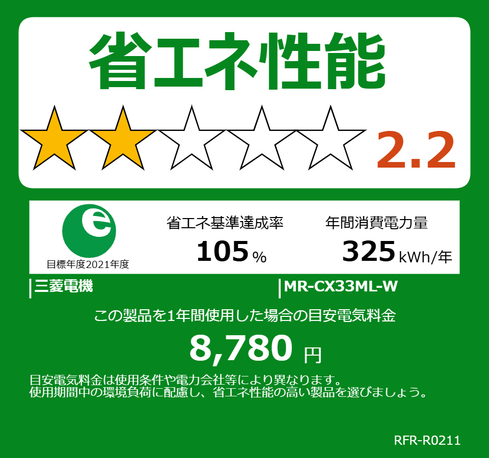 三菱冷蔵庫CXシリーズ 三菱冷蔵庫CXシリーズ マットリネンホワイト MR-CX33ML-W [60(cm) /330L /3ドア /左開きタイプ /2025年]