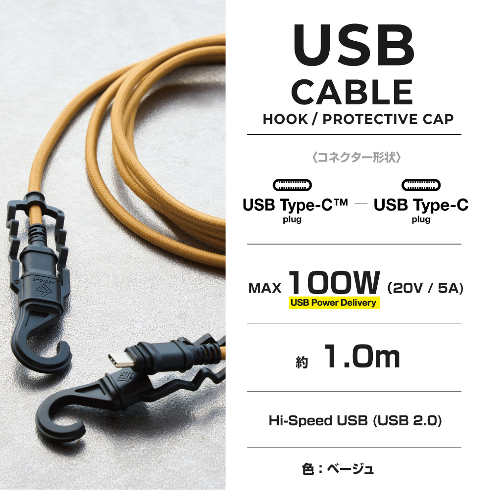 USB Type-C ケーブル ( USB-C to USB-C ) 1m PD 100W 急速充電 高耐久 先端保護 キャップ一体型フック付 IP54 防水/防塵 充電ケーブル 【 Type C ポート搭載 iPhone iPad MacBook 等対応 】 NESTOUT MPA-CCNE10BE