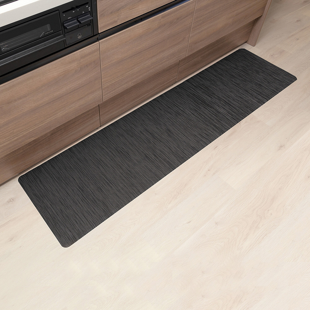 PVCキッチンマット 拭ける テキスタイル調 クラシックブラック 45×180cm はっ水 抗菌
