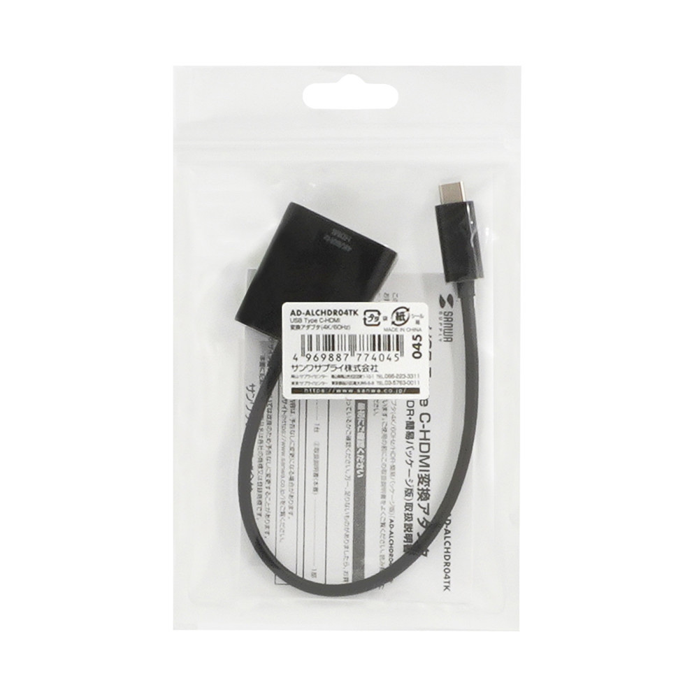 USB Type C-HDMI変換アダプタ(4K/60Hz/HDR・簡易パッケージ版)