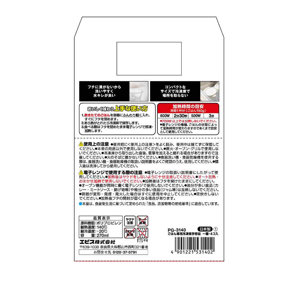 ごはん専用冷凍保存容器 270ml 1膳4個入