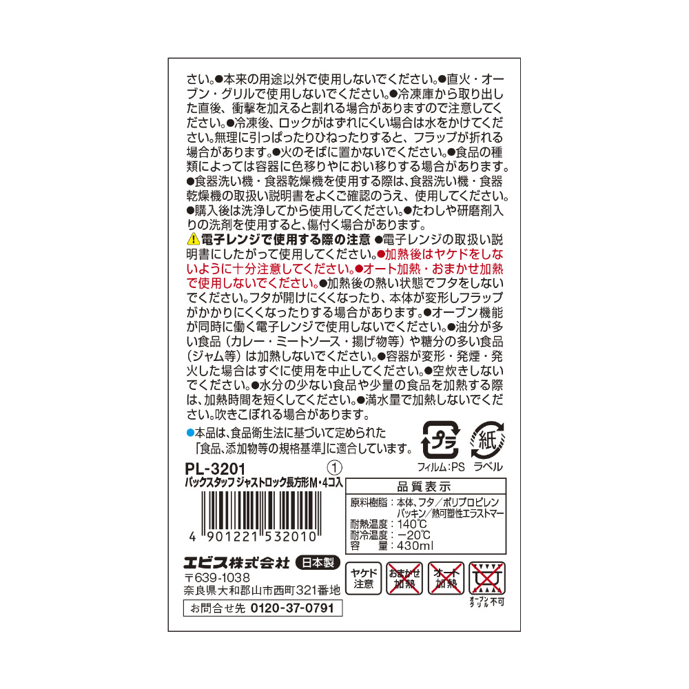 パックスタッフジャストロック長方形M 430ml 4コ入