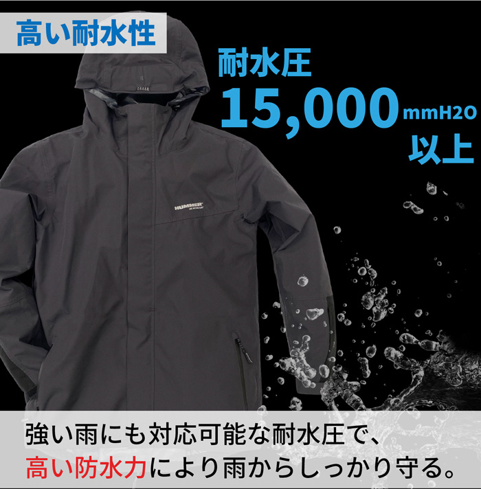 強い雨にも対応可能な耐水圧で、高い防水力により雨からしっかり守る。