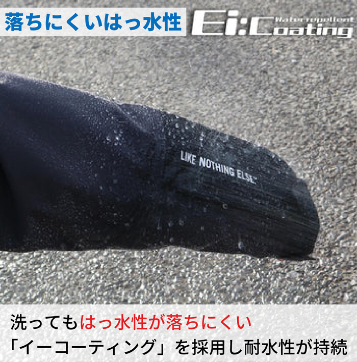 洗ってもはっ水性が落ちにくい「イーコーティング」を採用し耐水性が持続