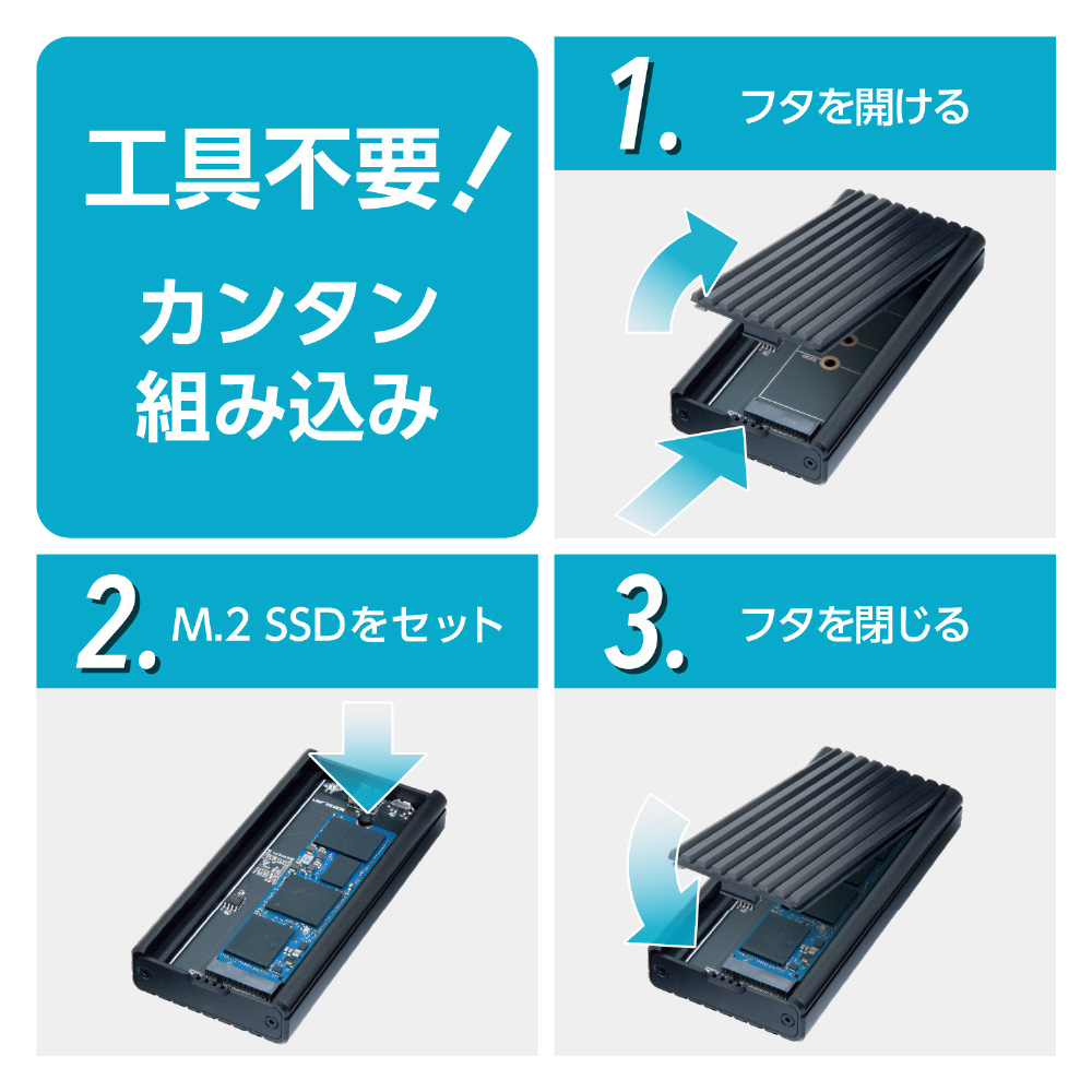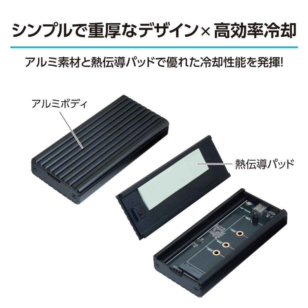 USB20Gbps対応の高速データ転送が可能なM.2 NVMe SSD外付け接続ケース