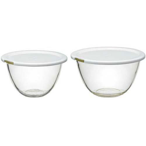 ラップの代わりや、冷蔵庫での保存に便利な耐熱ガラスボウル用のフタ付きボウル2点セット。