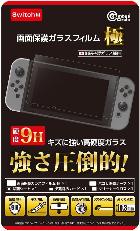本製品「Switch 用 画面保護ガラスフィルム 極」は、通常のフィルムよりも圧倒的にキズに強い「硬度9H」の高硬度ガラスを使用し、