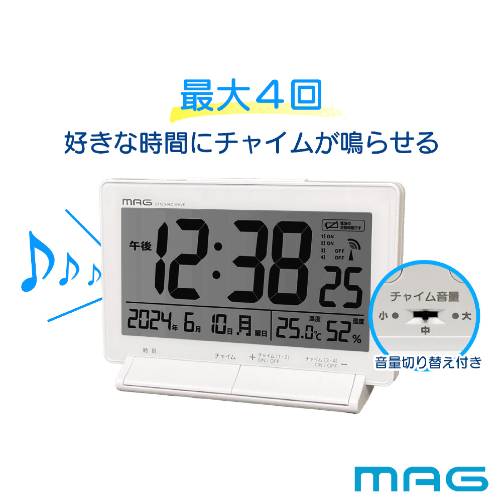 好きな時間にチャイムが鳴らせる 電波置き時計 タイムチャイム T-792 WH-Z [デジタル /電波自動受信機能有]