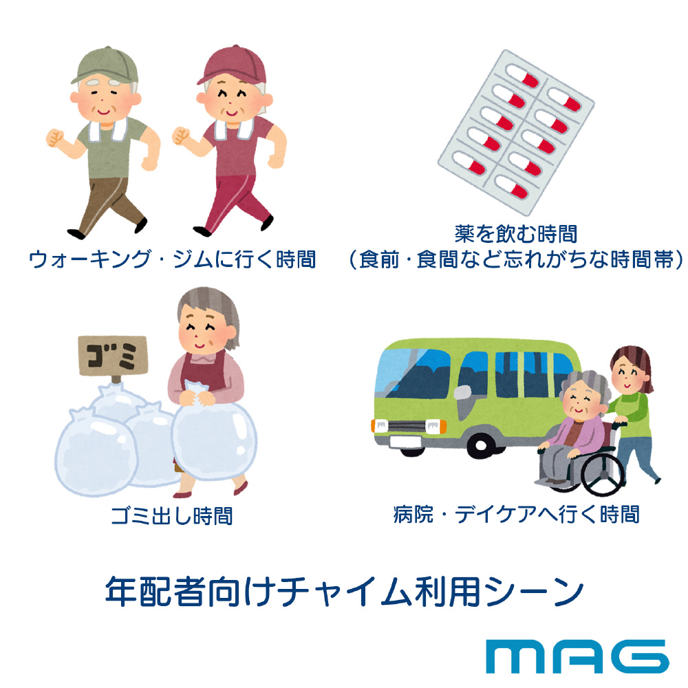 ご家庭ではもちろん、オフィスでは始業、就業、休憩時間の開始と終了時間の設定などにご利用頂けます。