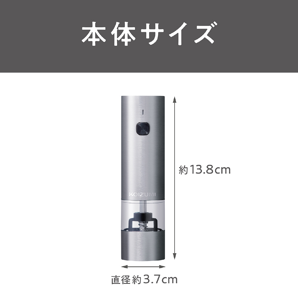 USB充電式、内容物が見えるキャビン、粗さ調節可能、マグネット付き土台付。
