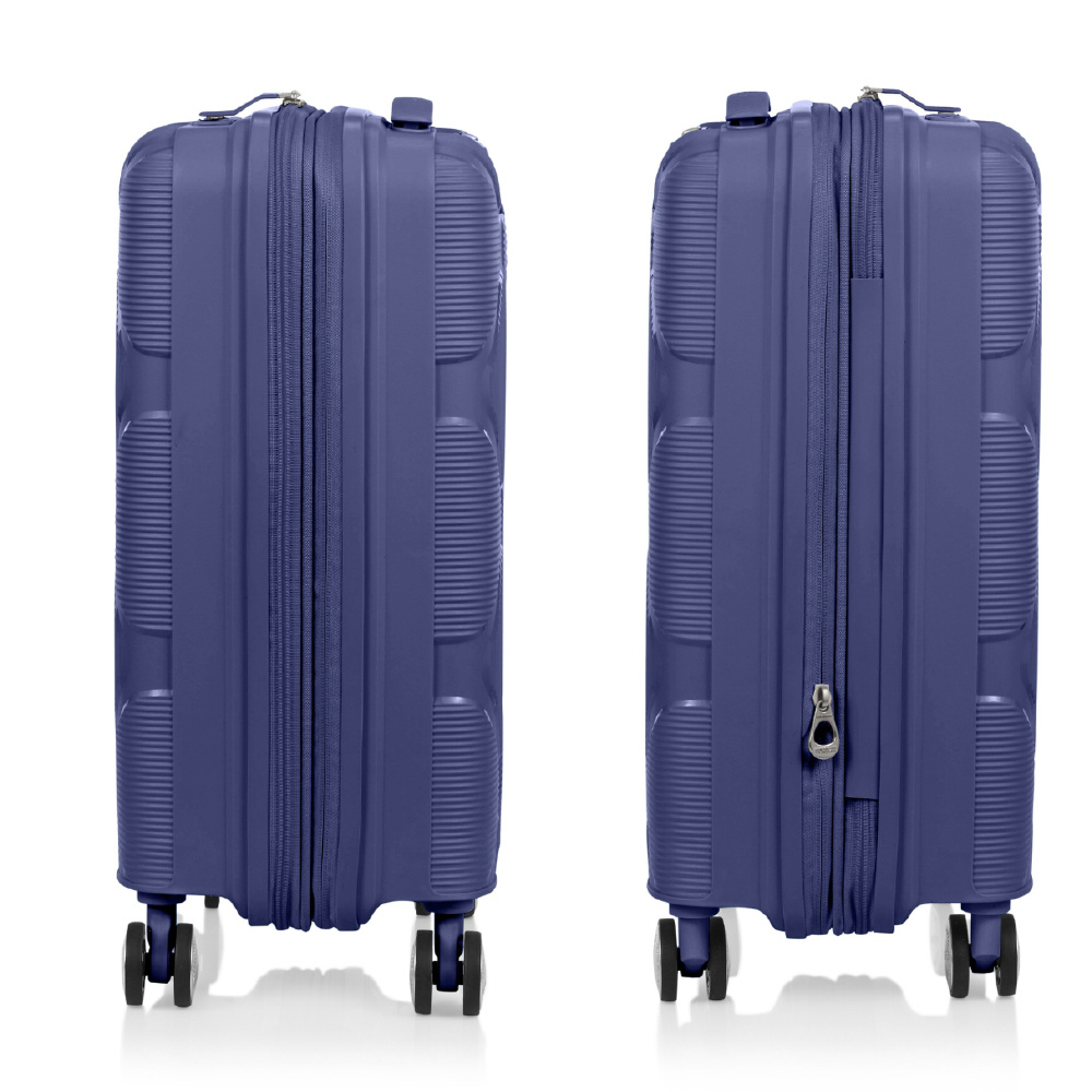 モダンな立体デザインと機能性を備えた、USBポート付き機内持ち込み対応スーツケース