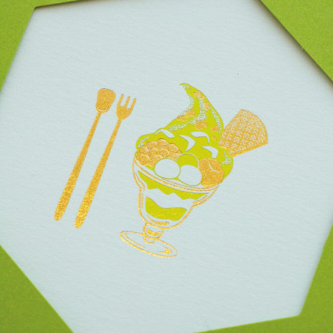 箔押しメッセージカード 1枚入 ROKKAKU×ごほうびスイーツ 抹茶パフェ R0032403