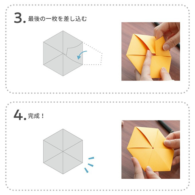 六角形の封筒があなたの想いを一枚一枚たいせつに包み込みます。