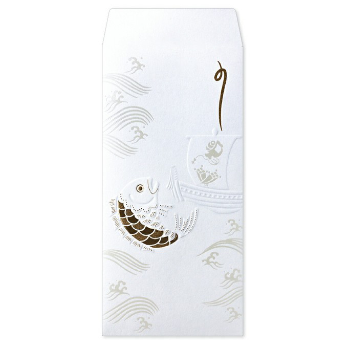 白無垢のように吉祥文様が浮き出す祝儀袋です。 全面にパール箔の箔押し加工を行なった上に、絵柄を立体的に表現する浮き出し加工をしています。 透け防止の内包み付き。 1組入り。