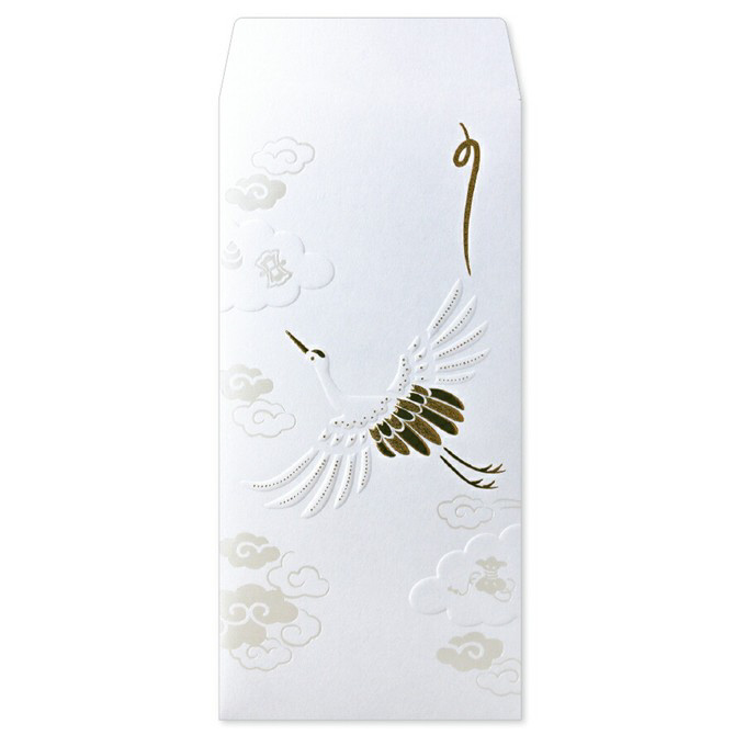 白無垢のように吉祥文様が浮き出す祝儀袋です。 全面にパール箔の箔押し加工を行なった上に、絵柄を立体的に表現する浮き出し加工をしています。 透け防止の内包み付き。 1組入り。
