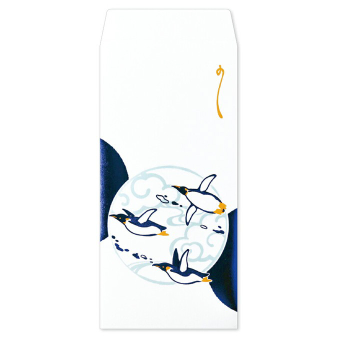 日本の伝統柄と愛らしい動物[飛雲流水文×ペンギン]を組み合わせた祝儀袋です。