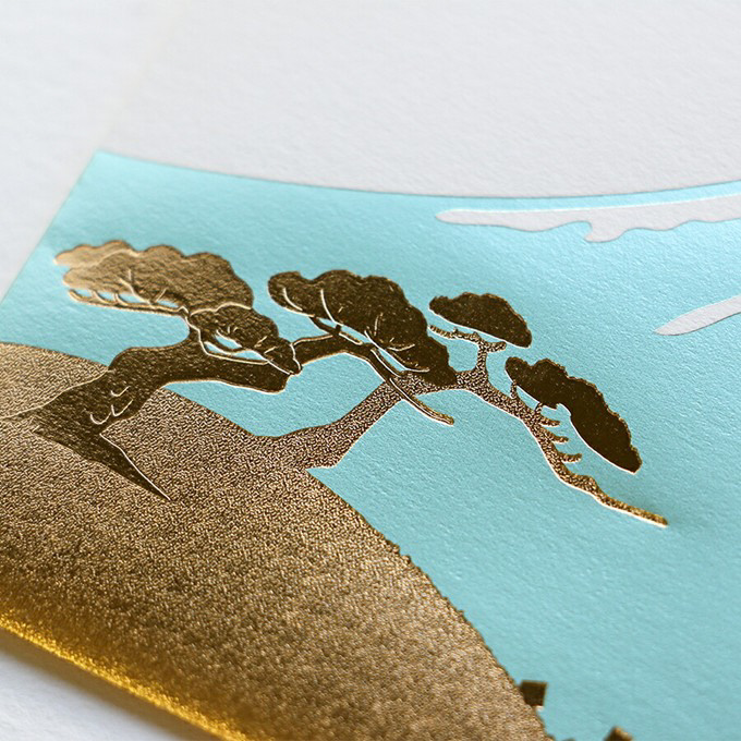 金箔エメラルド箔パール箔の3色の箔で絵柄を表現しています。