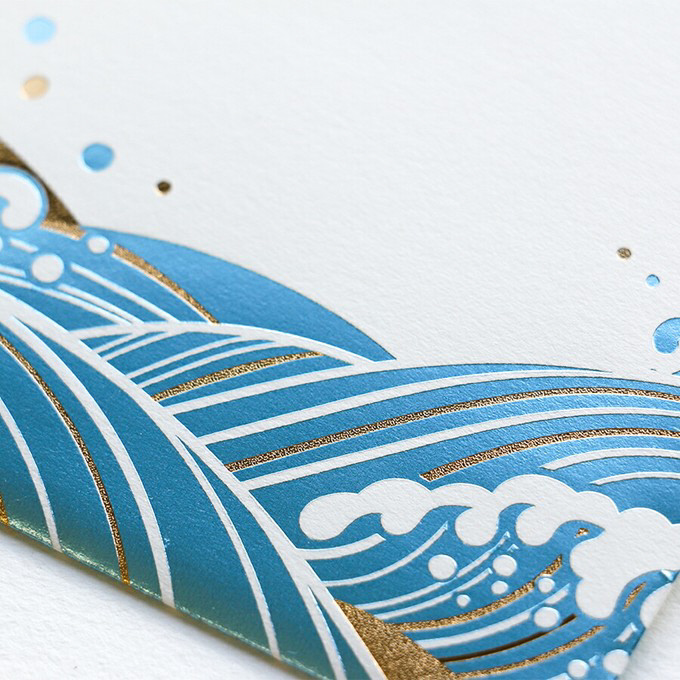 金箔エメラルド箔パール箔の3色の箔で絵柄を表現しています。 透け防止の内包み付き。 1組入り。