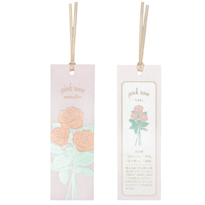 花言葉に想いを乗せて。 ボタニカルの繊細な描画を、淡いパールのような輝きの紙に箔押し。 裏面には花言葉と開運豆知識を添えたデザインのしおりに仕上げました。 花言葉 「優雅」「友情」「感謝」「思いやり」「感受性」。 2枚入り。