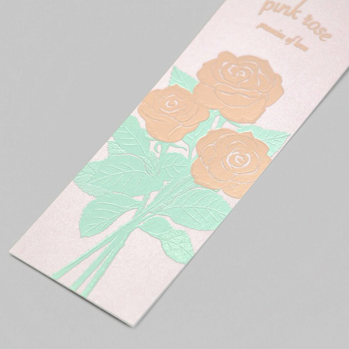ボタニカルの繊細な描画を、淡いパールのような輝きの紙に箔押し。