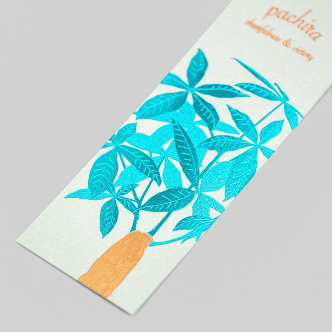 ボタニカルの繊細な描画を、淡いパールのような輝きの紙に箔押し。