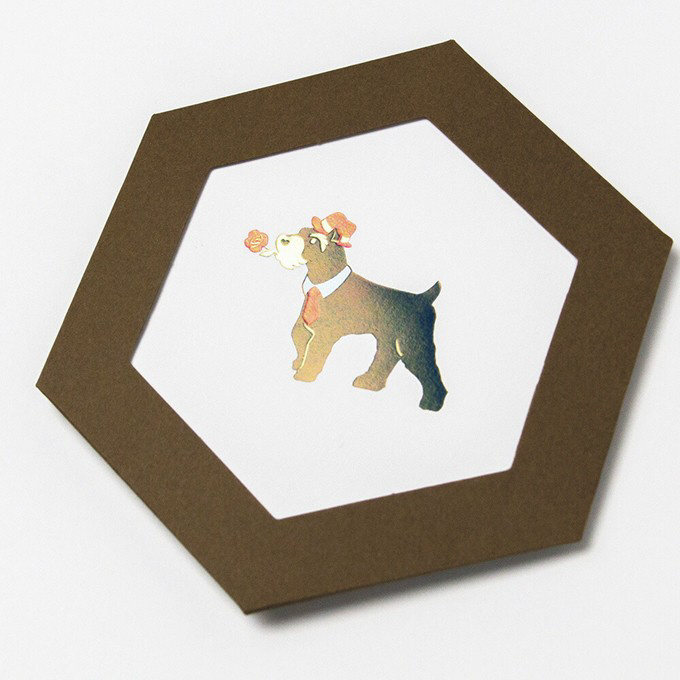 六角形の封筒があなたの想いを一枚一枚たいせつに包み込みます。 【箔押し】と可愛い犬たちのコラボ商品です。1セット入り。