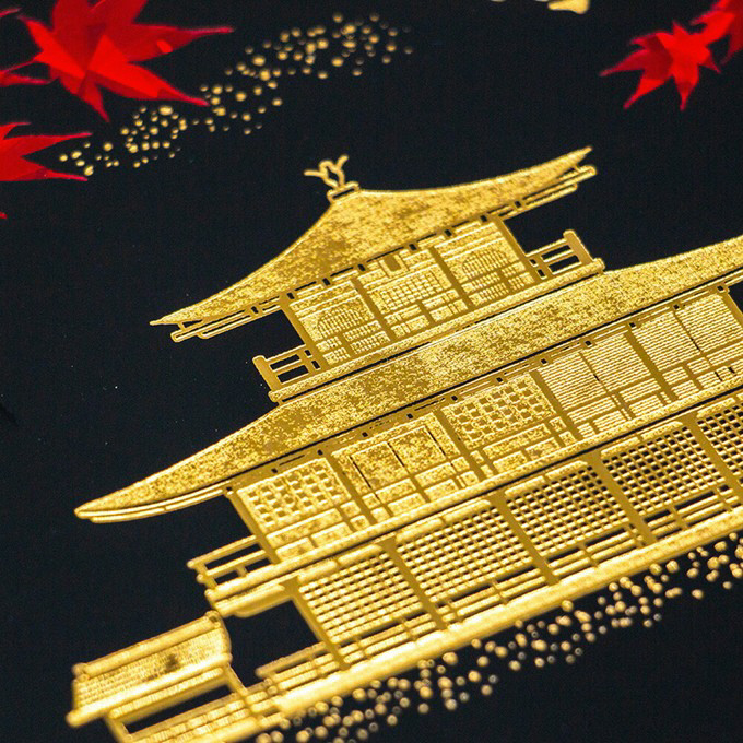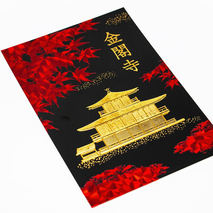 四季折々の表情を見せる金閣寺を、繊細な箔押し加工で演出したポストカードです。