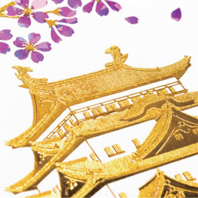箔押しポストカード 【ROKKAKU】 日本名所シリーズ 名古屋城「朝桜」1枚入 R0042501