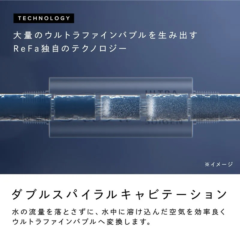 水道管内に大量のウルトラファインバブルを発生させるReFa独自のテクノロジー「ダブルスパイラルキャビンテーション」。