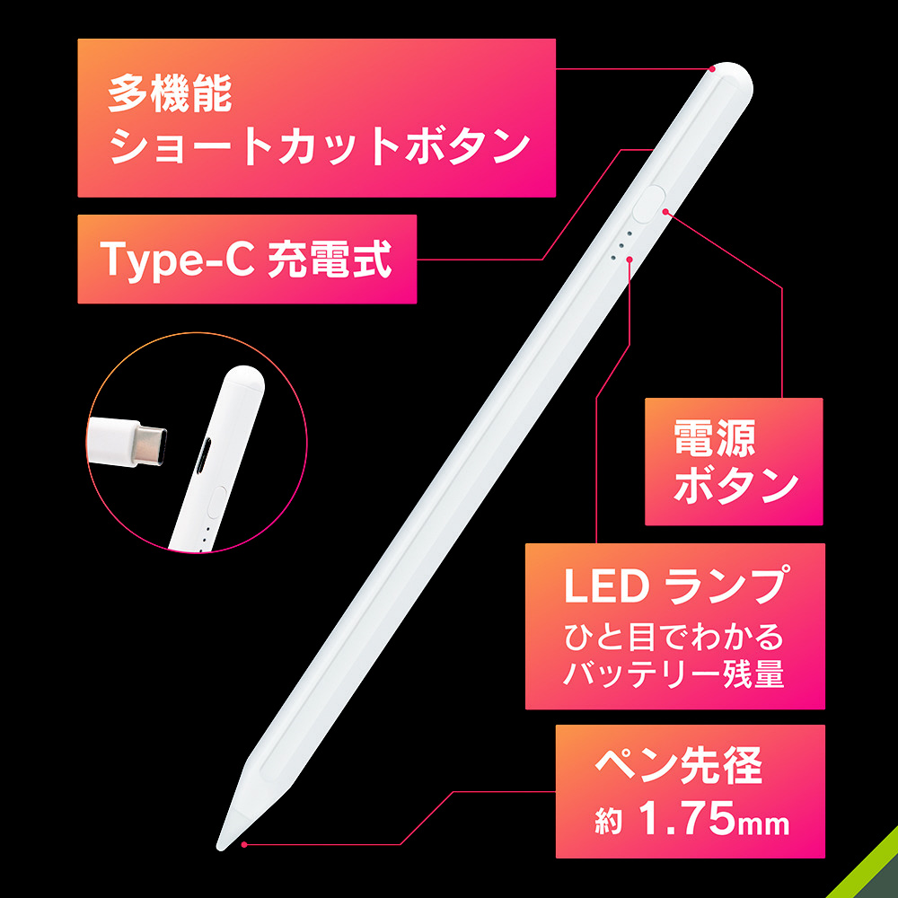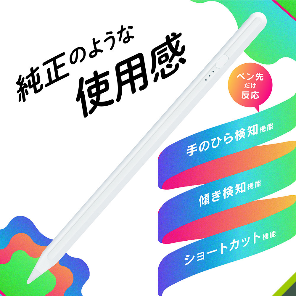〔タッチペン:iPad用/USB-A充電式〕ショートカット機能搭載 スタイラスペン
