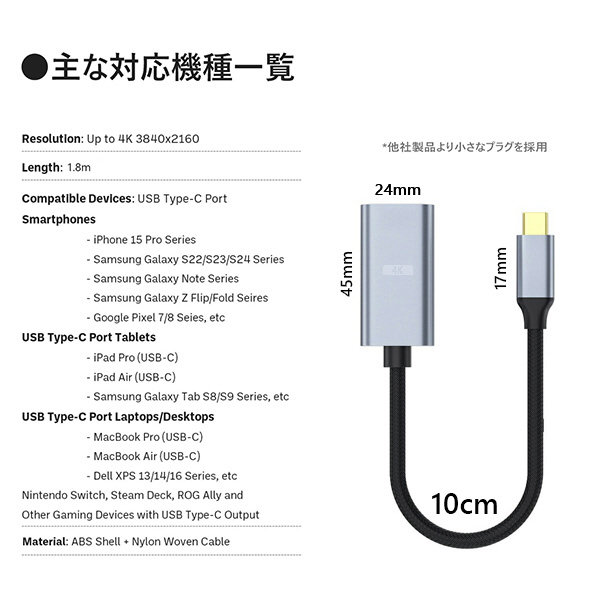 4K/60Hz対応のUSB-C HDMI変換アダプターです。