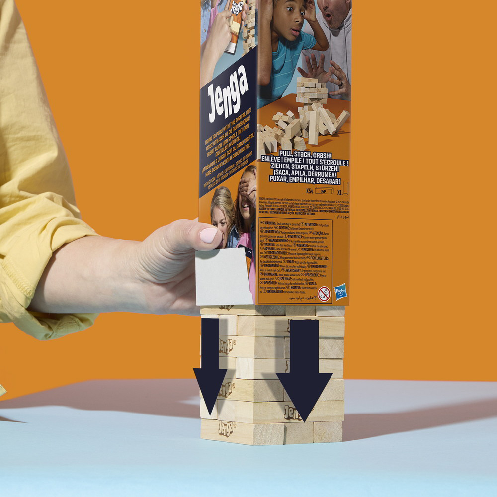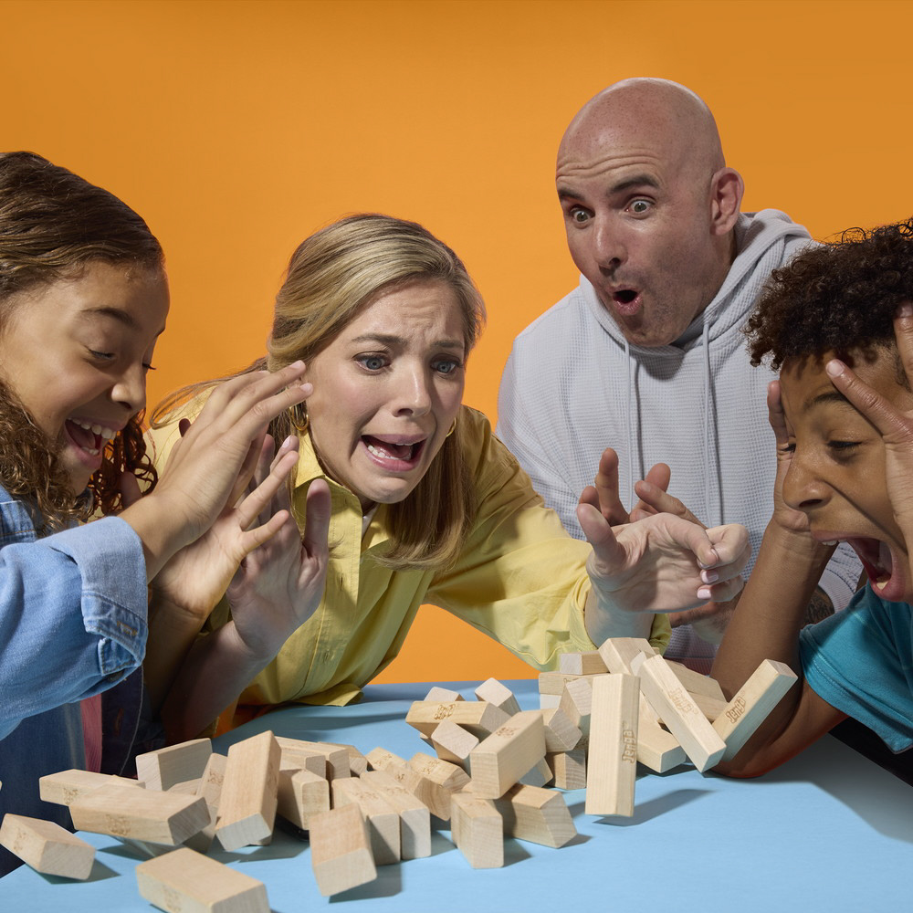 積まれたブロックタワーの中から順番に1本ずつ抜き取って一番上に乗せていき、タワーを倒してしまった人が負け!
