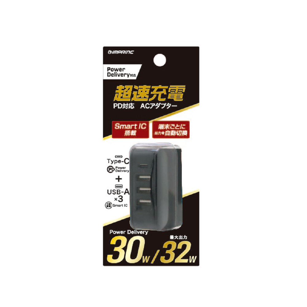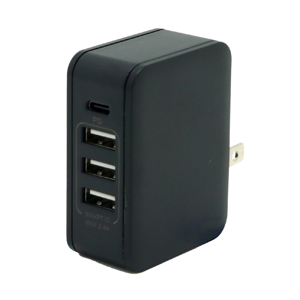 PD対応Type-C/3USB AC充電器PD30/32W ブラック