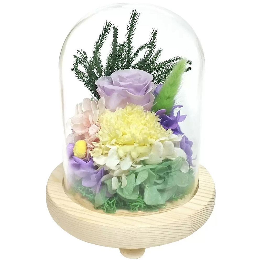 ガラスドームに包まれたプリザーブドフラワーアレンジメント