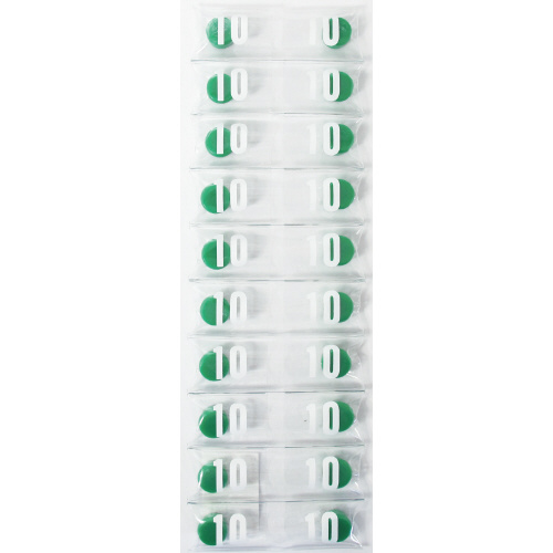 ●寸法:成型部Φ10mm,磁石Φ8mm●材質:再生PS樹脂40%.マグネット●包装:20個連結PVC個装●入数:20個入●色:緑