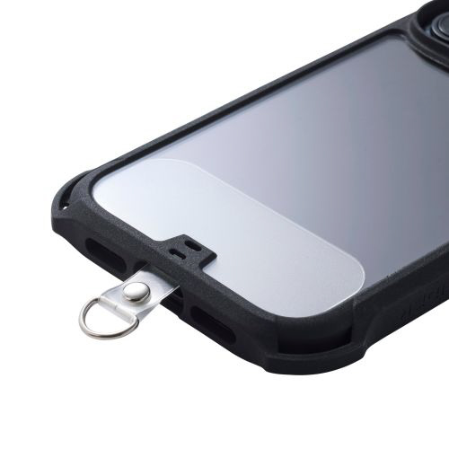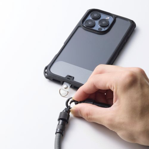 ケースにストラップホールがなくても、付属のストラップホールシートをスマートフォンとケースの間に挟むだけで使用できます。