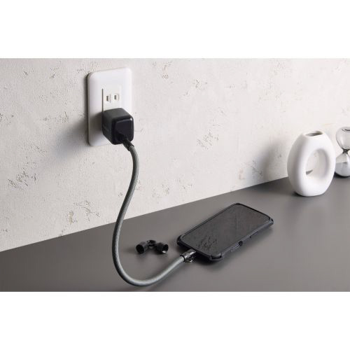 スマートフォン用ハンドストラップとしても、充電ケーブルとしても使える2in1仕様のUSBケーブルハンドストラップです。手首や腕に掛けてスマートフォンの落下を防ぎつつ、両手を自由に保ちながら操作ができます。USB Type-C(TM)に対応し、最大60W(20V/3A)の送電が可能。外出先でも快適に使えます。