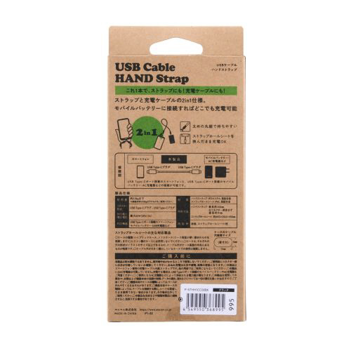 スマートフォン用ハンドストラップとしても、充電ケーブルとしても使える便利な2in1仕様のUSBケーブルハンドストラップです。