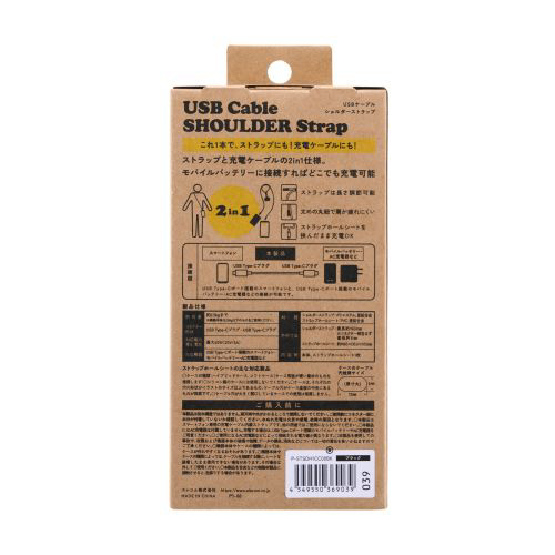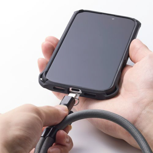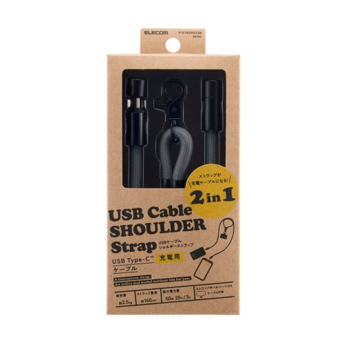 スマートフォン用ストラップとしても、充電ケーブルとしても使える便利な2in1仕様のUSBケーブルショルダーストラップです。調節可能な丸ひもタイプで長時間使用しても肩が痛くなりにくく、普段使いはもちろん、仕事や旅行でも活躍します。USB Type-C(TM)に対応し、最大60W(20V/3A)の送電が可能。外出先でも快適に使用できます。