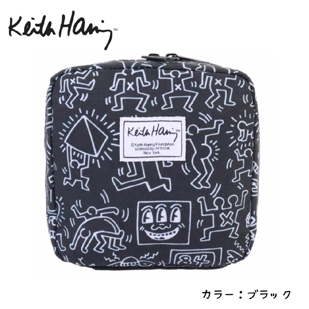 キースへリング スクエアポーチ 化粧ポーチ ポーチ 小物入れ Travel Line ブラック 15808-001